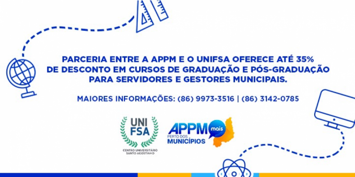 07 ABR Parceria entre a APPM e o UNIFSA oferece até 35% de desconto em cursos de graduação e pós-graduação para servidores e gestores municipais