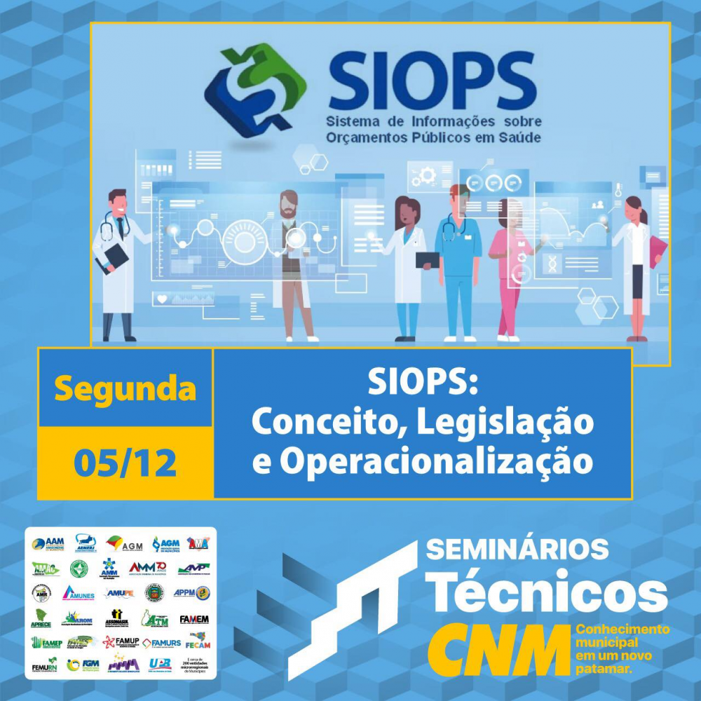 Este seminário tem como objetivo apresentar o SIOPS (Sistema de Informações sobre Orçamentos Públicos em Saúde), o conceito, a legislação pertinente, a operacionalização do sistema, alimentação das despesas em saúde e despesas com enfrentamento a Covid-19, obrigatoriedade de alimentação, prazos de envio e homologação dos dados, versões e inconsistências, retransmissão de informações, as penalidades pela falta de informações, bloqueios de transferências voluntárias e constitucionais.
