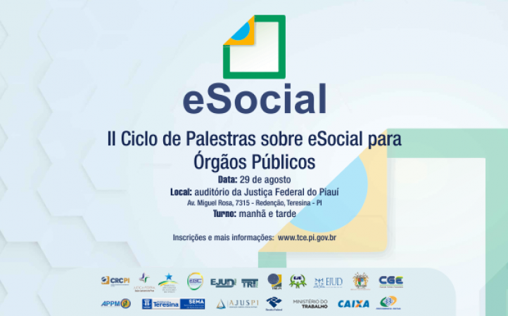 Empenhado em levar o eSocial ao conhecimento dos outros órgãos públicos, principalmente prefeituras, órgãos estaduais e federais, o Tribunal de Contas do Estado do Piauí, através da Escola de Gestão e Controle Alcides Nunes, traz ao Piauí pela segunda vez o ciclo de palestras sobre o eSocial para Órgãos Públicos, em parceria com outras instituições.