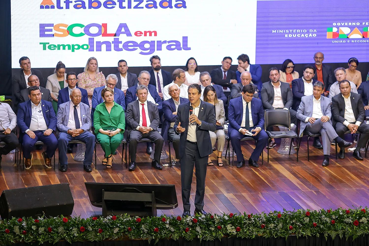 O ministro da Educação, Camilo Santana, esteve em Teresina nesta segunda-feira (11), para participar da solenidade que marca a adesão do Piauí a três programas do Ministério da Educação (MEC), sendo eles: Compromisso Nacional Criança Alfabetizada, Programa Escola em Tempo Integral e o Pacto Nacional pela Retomada de Obras e de Serviços de Engenharia Destinados à Educação Básica, que vai dar andamento a 170 construções paralisadas ou inacabadas em 100 municípios piauienses.