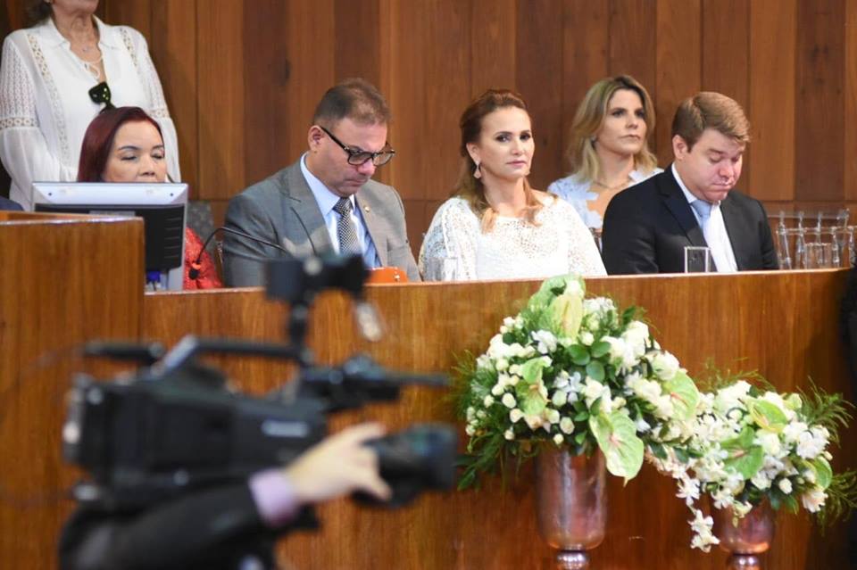 No evento, os parlamentares prestaram juramento e assinaram o termo de posse. Logo em seguida, alguns subiram até a tribuna onde discursam.
