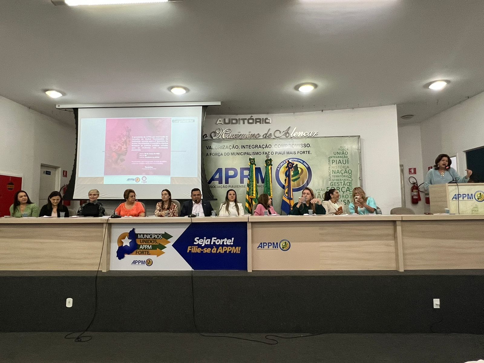 O encontro aconteceu no auditório da APPM e contou com a participação de um expressivo número de mulheres, entre elas, a Senadora Jussara Lima; Primeira-dama do Estado, Isabel Fonteles; Prefeitas; deputadas estaduais Simone Pereira, Jannaína Marques e Ana Paula; Secretária de Estado da Mulher, Zenaide Lustosa; Procuradora de Justiça e Ouvidora-Geral do Ministério Público, Teresinha Borges; Coronel PM Elizete Lima; Gracília Carvalho, representante da Secretária de Estado da Assistência Social, Regina Sousa; Carlete Freitas, Diretora de Operações do Piauí Fomento; Vice-prefeitas, Vereadoras; Primeiras-damas, Secretárias municipais e representantes de classe, entre outras. O Deputado Estadual Georgiano Neto e os Prefeitos de Bertolínia, Caraúbas do Piauí, Dom Expedito Lopes, Isaías Coelho, Landri Sales, Massapê do Piauí, Nova Santa Rita, São Félix do Piauí e Tanque do Piauí também participaram da cerimônia.