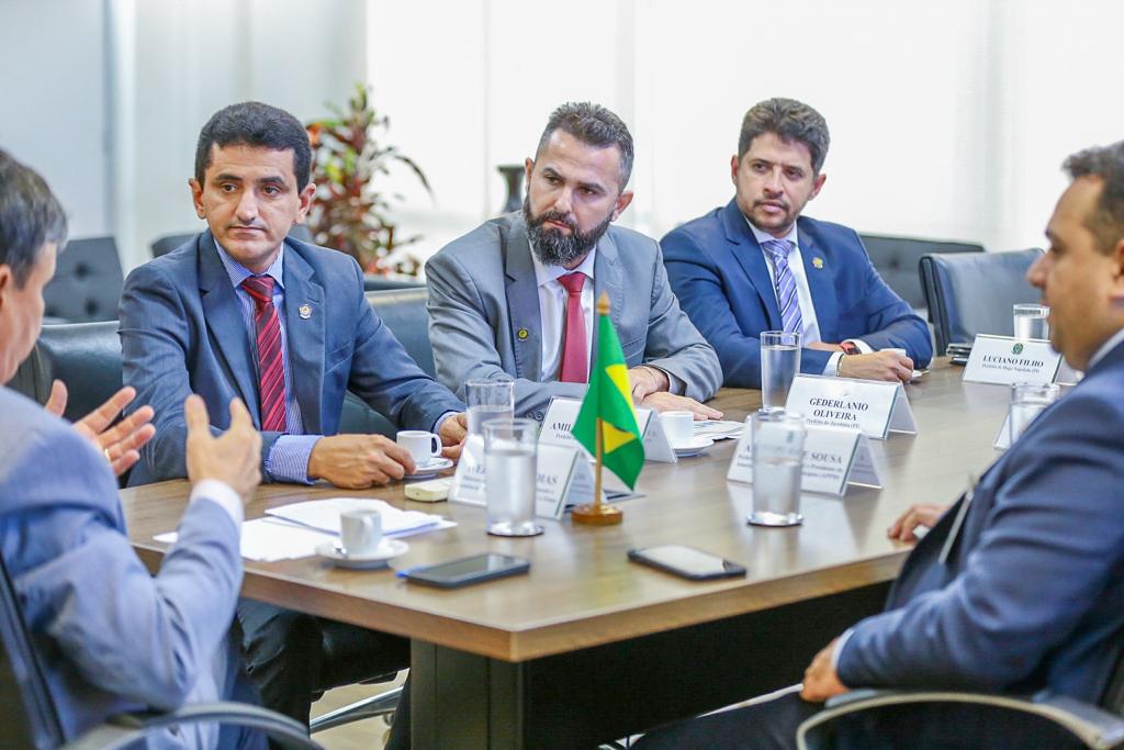 O presidente da APPM, Toninho, e os prefeitos de Santo Inácio do Piauí, Tairo Mesquita; Jacobina do Piauí, Gederlânio Rodrigues (GD); Hugo Napoleão, Luciano Barreto; e Floresta do Piauí, Milton Rodrigues, estiveram reunidos, na noite dessa quarta-feira (08), em Brasília, com o ministro do Desenvolvimento Social e Assistência Social, Família e Combate à Fome, Wellington Dias.