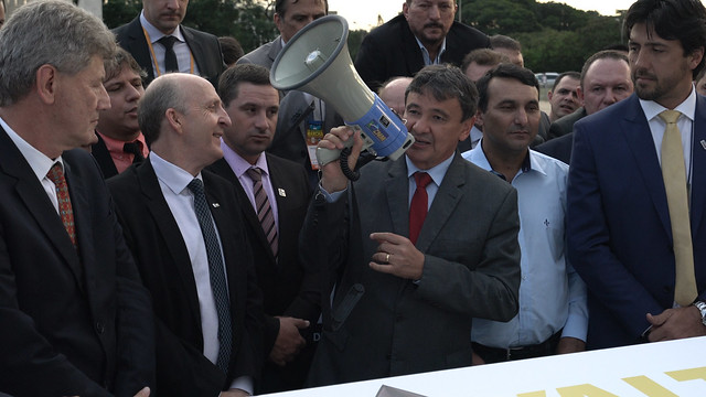 Liderados pelo presidente da Confederação Nacional de Municípios (CNM), Glademir Aroldi, centenas de gestores municipais que participam da XXII Marcha a Brasília em Defesa dos Municípios realizaram, no final da tarde desta terça-feira (09), uma manifestação em frente ao Supremo Tribunal Federal (STF). A ação dos municipalistas pede que a Corte promova o julgamento da Ação Direta de Inconstitucionalidade (ADI) 4917, que dispõe sobre os critérios de distribuição dos royalties do petróleo. Após a manifestação, o presidente do STF, Dias Toffoli, sinalizou que deve receber um grupo de gestores nesta quarta-feira (10). Estarão presentes, além de Aroldi, representantes das cinco regiões do país.