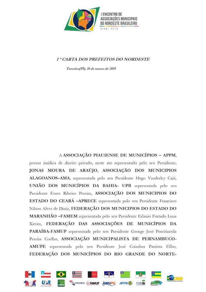 Confira a Carta dos Prefeitos do Nordeste: