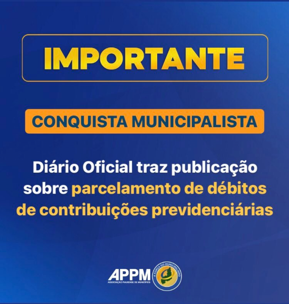 Conquista: Diário Oficial traz publicação sobre parcelamento de débitos de contribuições previdenciárias