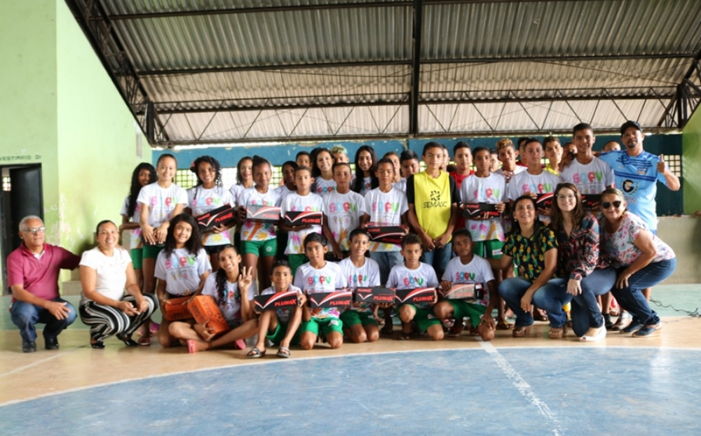 A solenidade de entrega foi realizada no Ginásio de Esportes “O Pindungão” e contou com a presença das crianças e jovens que foram beneficiados, da secretária, Martina Cavalcante; do secretário de Esportes, França e servidores da SEMASC.