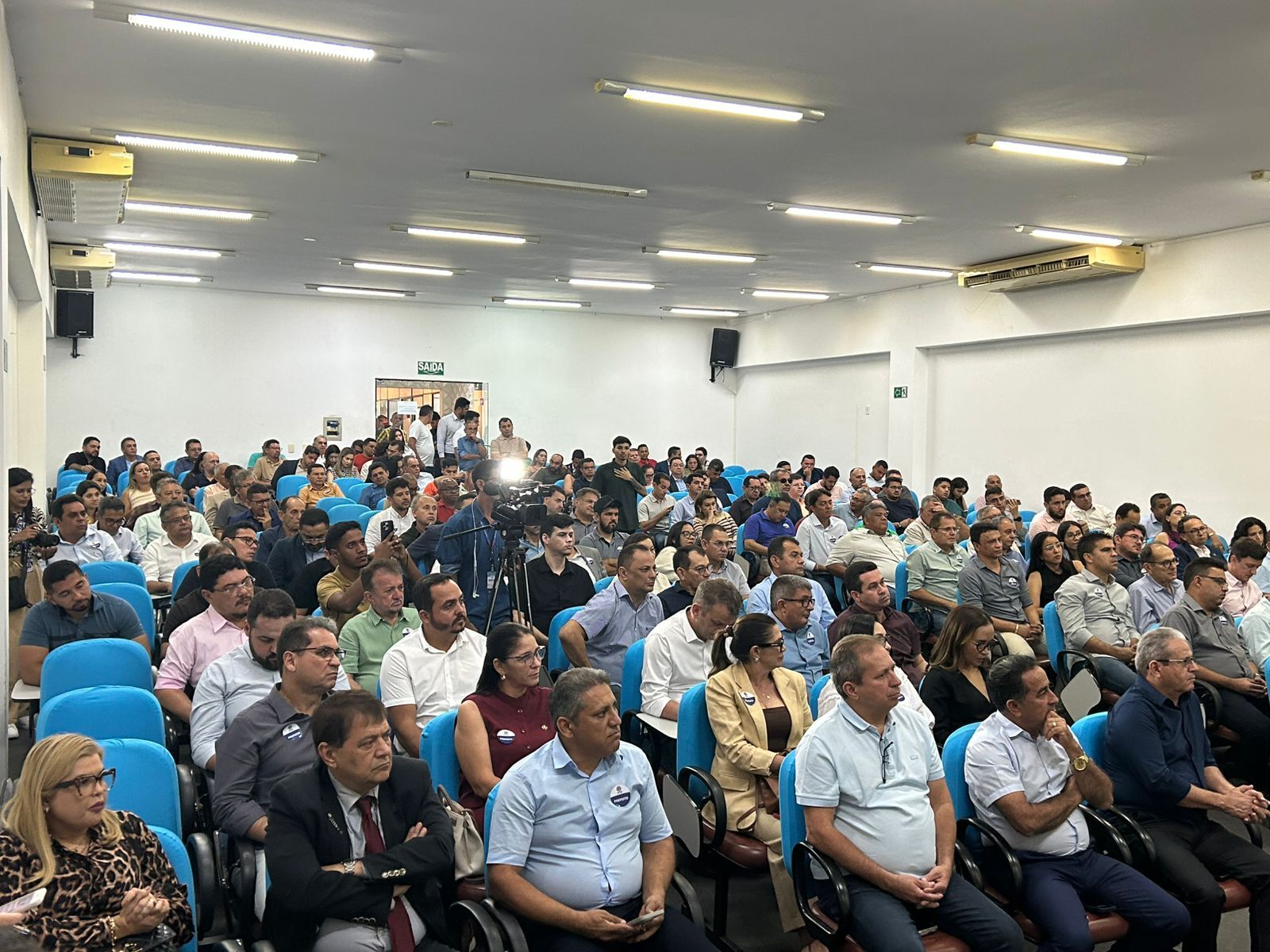 Prefeitos de todo o estado se reuniram, na manhã desta sexta-feira (27), no auditório da APPM, com os três senadores piauienses e deputados federais, em busca de apoio para a aprovação de uma Emenda à PEC 12/2022, que defende que para o pleito de 2028, onde serão eleitos os prefeitos que exercerão mandato no período de transição (2029/2034), possa se candidatar qualquer cidadão brasileiro que esteja quite junto à Justiça Eleitoral.