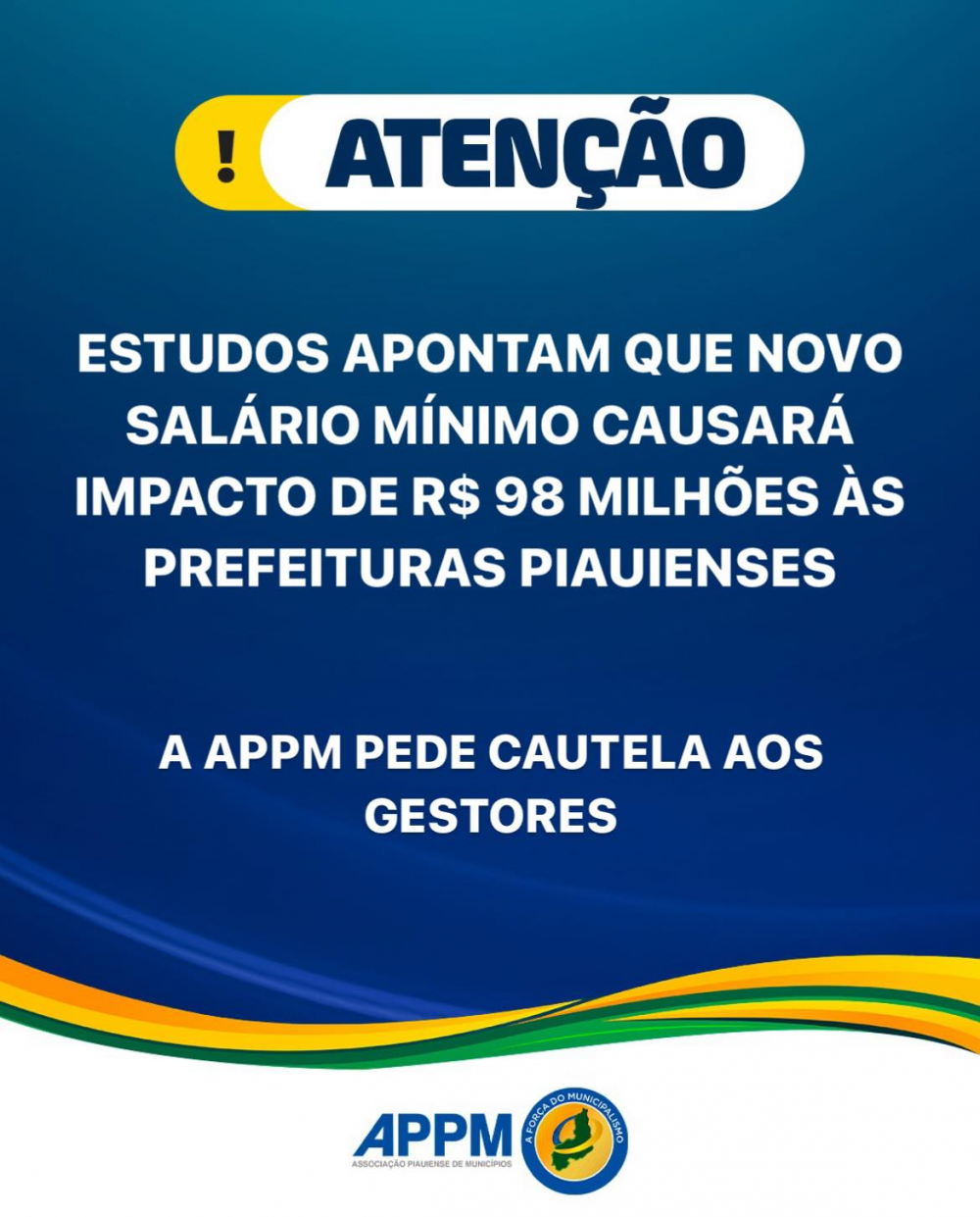 "Com o anúncio do novo salário mínimo, as prefeituras piauienses terão um impacto de R$ 98 milhões, então nós já estamos alertando os gestores que teremos esse déficit negativo no aumento das contas municipais, diante do aumento de encargos e de todas as despesas, e nesse momento a gente pede cautela para que possamos iniciar o ano com esse cuidado, aguardando as previsões do Fundeb, as previsões do FPM para 2024, de modo que tenhamos um ano de mais esperança e maior arrecadação, onde os municípios não passem por tantos aperreiros como aconteceu no primeiro e no segundo semestre desse ano de 2023", relata Toninho.