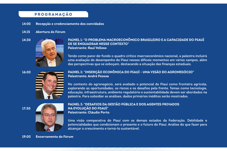 Em sua palestra, Raul Velloso irá discutir "o problema macroeconômico brasileiro e a capacidade do Piauí de se enquadrar nesse contexto".
