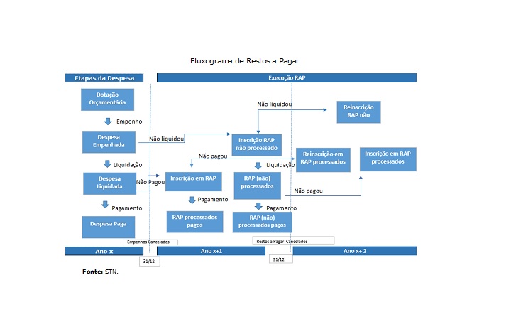 Por meio do um fluxograma, o levantamento apresenta o processo que envolve os estágios da despesa pública, representados pelo empenho, liquidação e pagamento. Só nos primeiros meses deste ano, um relatório da Secretaria do Tesouro Nacional (STN) indica um total de R$ 155 bilhões de Restos a Pagar inscritos no Orçamento Geral da União (OGU). O que soma mais de mais de R$ 6,8 bilhões e indica aumento de 4,6%, em relação a 2017.
