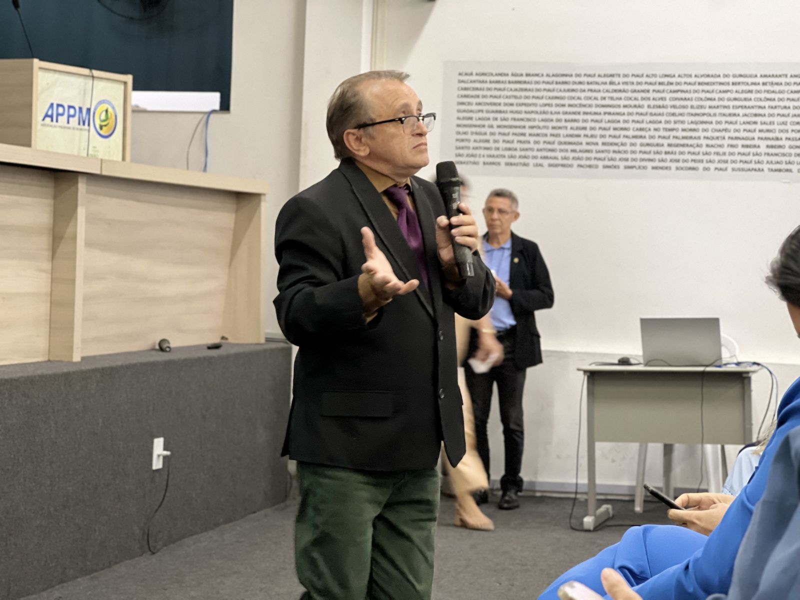 O presidente da APPM, Toninho, fez a abertura do evento, ocasião em que revelou a relevância da palestra para que os municípios possam conscientizar a população sobre o Imposto de Renda Solidário (IRS).