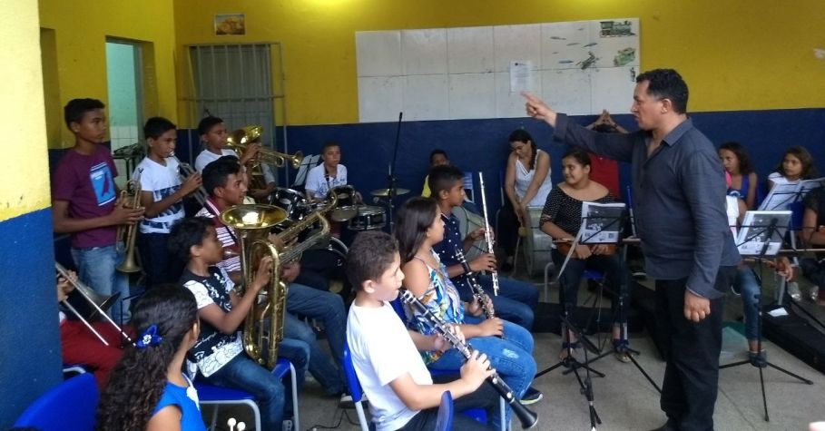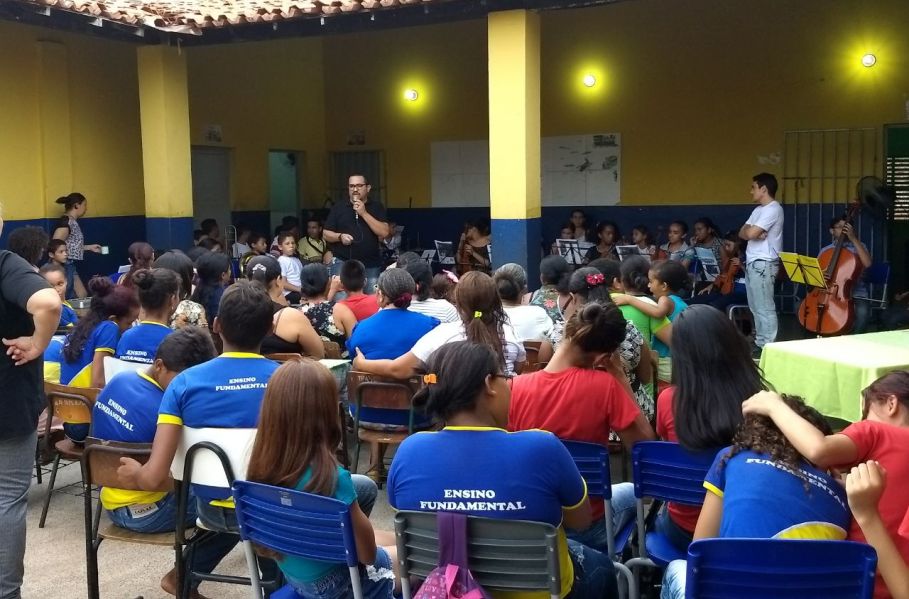 Na primeira apresentação experimental em forma de sarau, os 23 alunos de sopro e percussão sobre orientação do maestro Rocha, apresentaram-se separados dos outros 21 alunos que conduziram os instrumentos de cordas, com a orientação de Carlos Giberto. São 44 alunos ao todo, no entanto na apresentação de sábado apresentaram se 38 alunos.