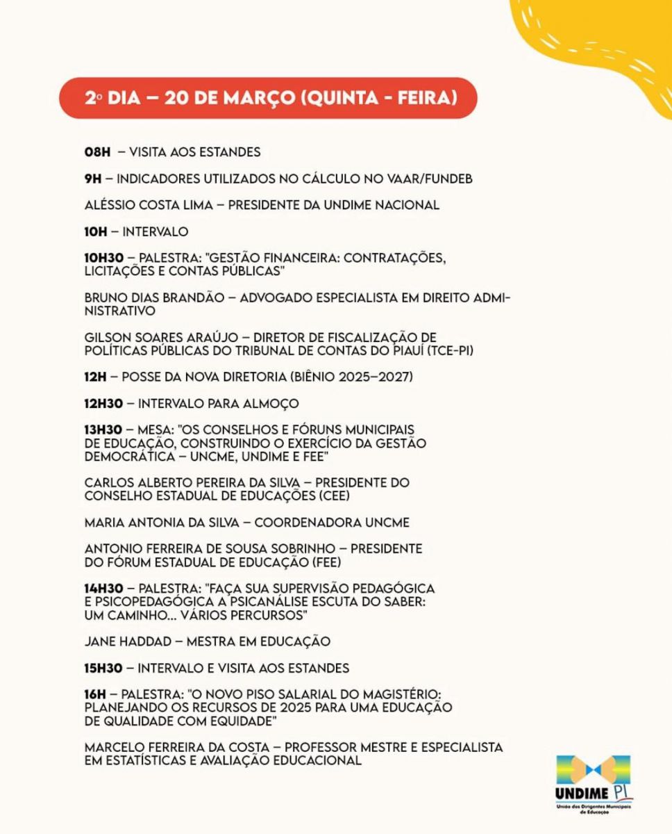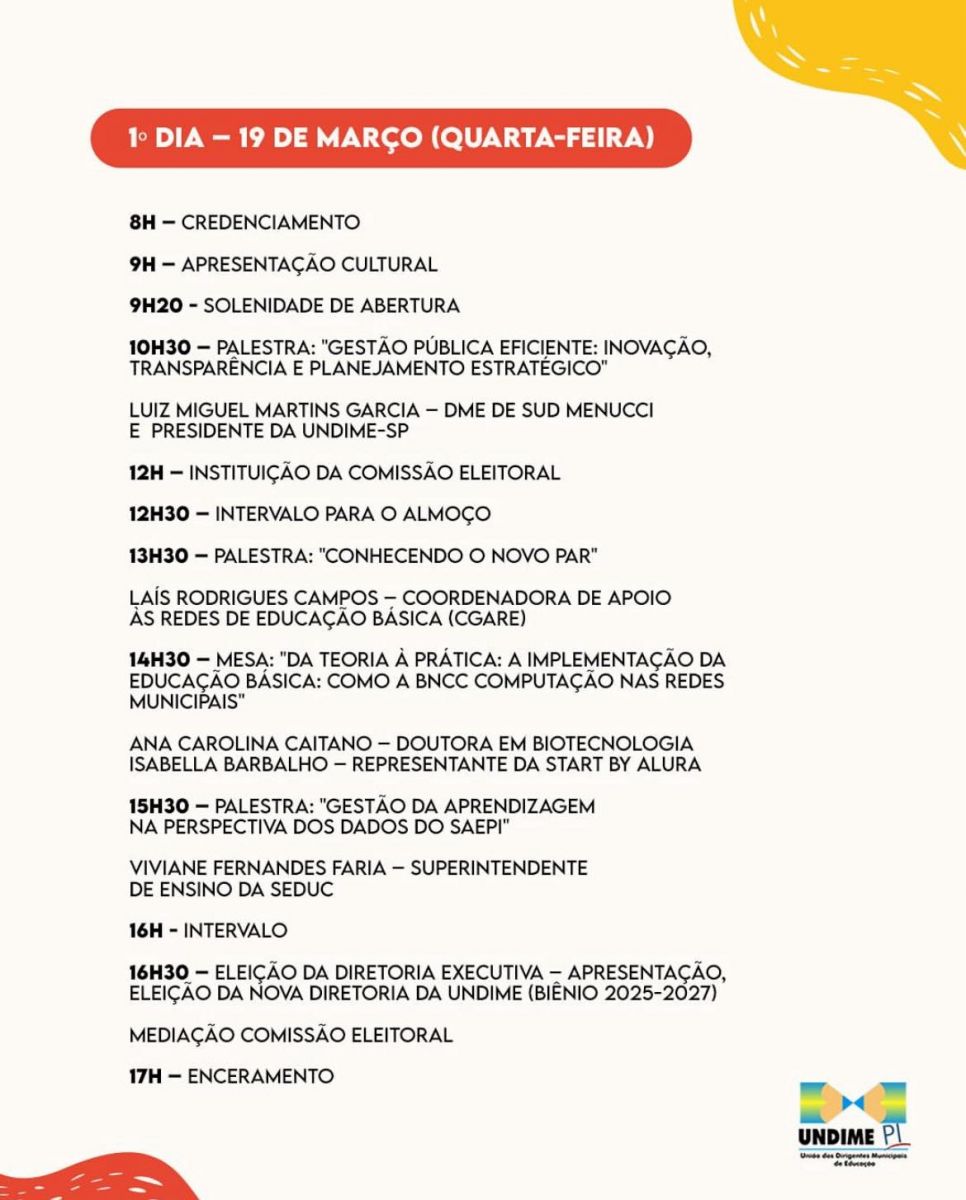 A União dos Dirigentes Municipais de Educação seccional Piauí (Undime-PI) realiza, nos dias 19 e 20 de março, o 17° Fórum Ordinário da instituição, que tem como tema: Gestão de Resultados: estratégias, caminhos e soluções para uma gestão participativa e eficiente.