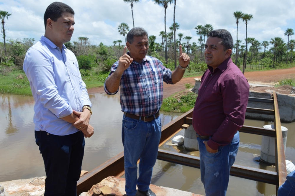 O prefeito comemora o início da construção da ponte do São Pedro em concreto e aço. O prefeito Ribinha, que visitou o local da obra nessa segunda, 05.02, acompanhado do secretário de Desenvolvimento Rural, Airton Matos, e do suplente de vereador Zé Pereira, disse que a ponte está sendo construída com estrutura para suportar até 30 toneladas e permitir a passagem de carros pesados como ônibus escolares.