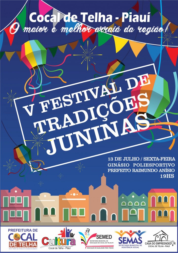A Prefeitura de Cocal de Telha confirmou nesta Segunda-Feira (24) a realização da 5ª. Edição do Festival de Tradições Juninas. O evento acontecerá no Ginásio Poliesportivo Prefeito Raimundo Anísio no dia 13 de Julho. A Secretaria Municipal de Cultura está coordenando todo o evento que contará com apresentações de quadrilhas de vários municípios, grupos de dança, casamento caipira, barracas com bebidas e comidas típicas.