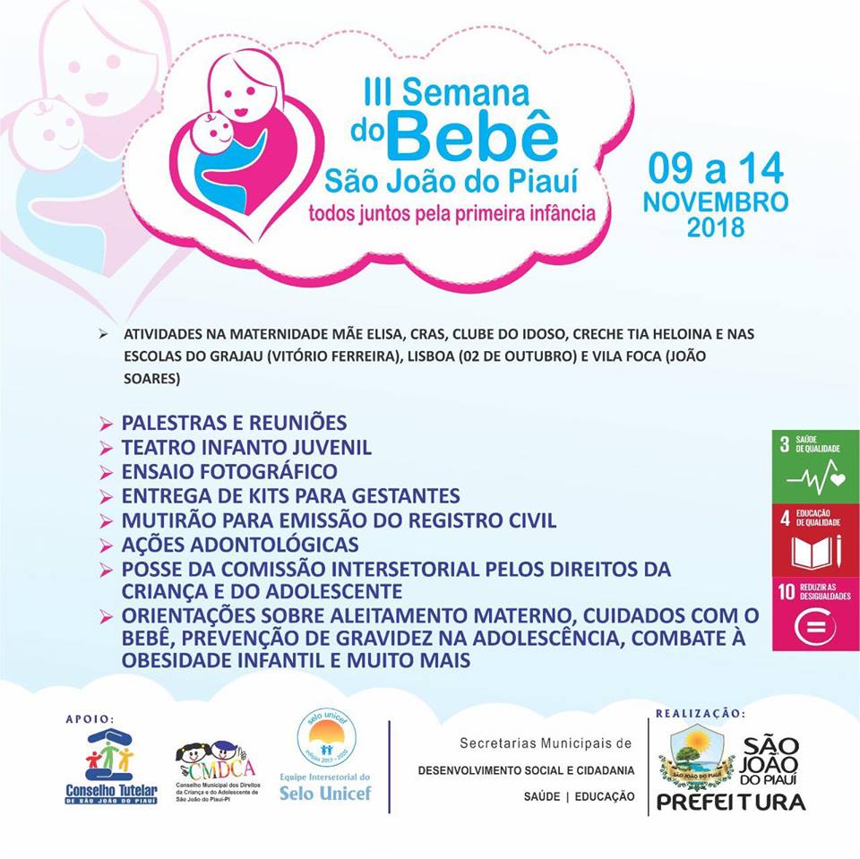São João do Piauí se prepara para realizar durante uma semana diversas atividades voltadas para a saúde da Criança, da gestante, hábitos saudáveis de alimentação ainda na primeira infância, prevenção da gravidez na adolescência e fortalecimento do protagonismo juvenil.