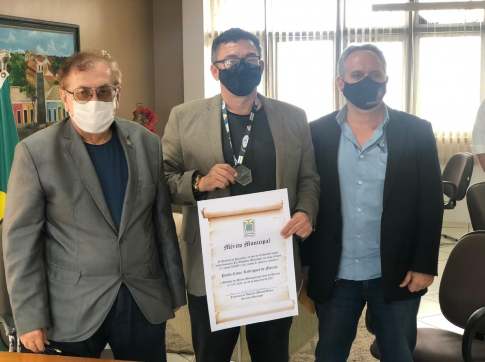 O presidente da APPM, Paulo César (PP), recebeu na manhã desta quinta-feira (24), das mãos do prefeito de Parnaíba, Mão Santa (PP), a medalha do Mérito Municipal, concedida a personalidades que contribuem com o crescimento da cidade. O momento também foi marcado pela filiação de Parnaíba à Associação Piauiense de Municípios.