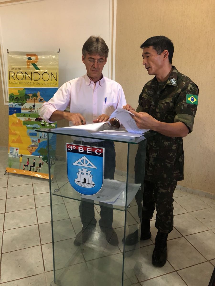 O Projeto Rondon, do Ministério da Defesa, realizou nesta quarta-feira (27), às 10 horas, no 3º Batalhão de Engenharia de Construção, em Picos/PI, a assinatura dos acordos de cooperação para Operação João de Barro, em parceria com o governo estadual e apoio, além da unidade de engenharia, do 25º Batalhão de Caçadores, do Exército Brasileiro. Na solenidade, o prefeito de Santa Cruz do Piauí, Barroso Neto, representou o presidente da APPM, Gil Carlos.