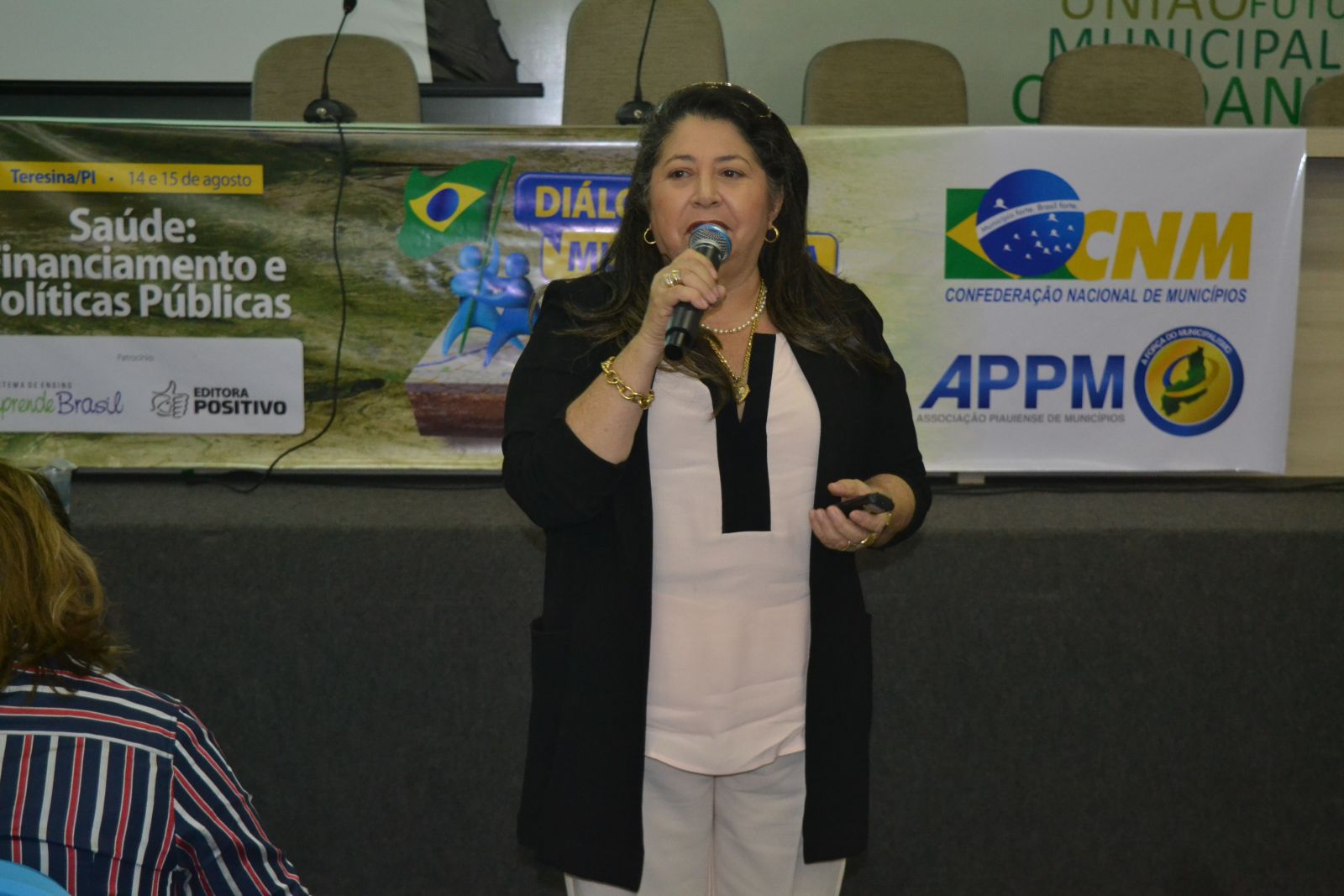 A presidente do Conselho de Secretarias Municipais de Saúde (Cosems PI), Leopoldina Cipriano, destacou durante sua fala o investimento em gastos com saúde, incentivo de saúde bucal, além dos desafios na organização da rede de atenção à saúde. “Dentro dos municípios hoje, nós não temos garantia dos repasses e temos que executar e planejar”, pontuou. Ainda segundo ela, os municípios hoje gastam cerca de 22% do orçamento com saúde.