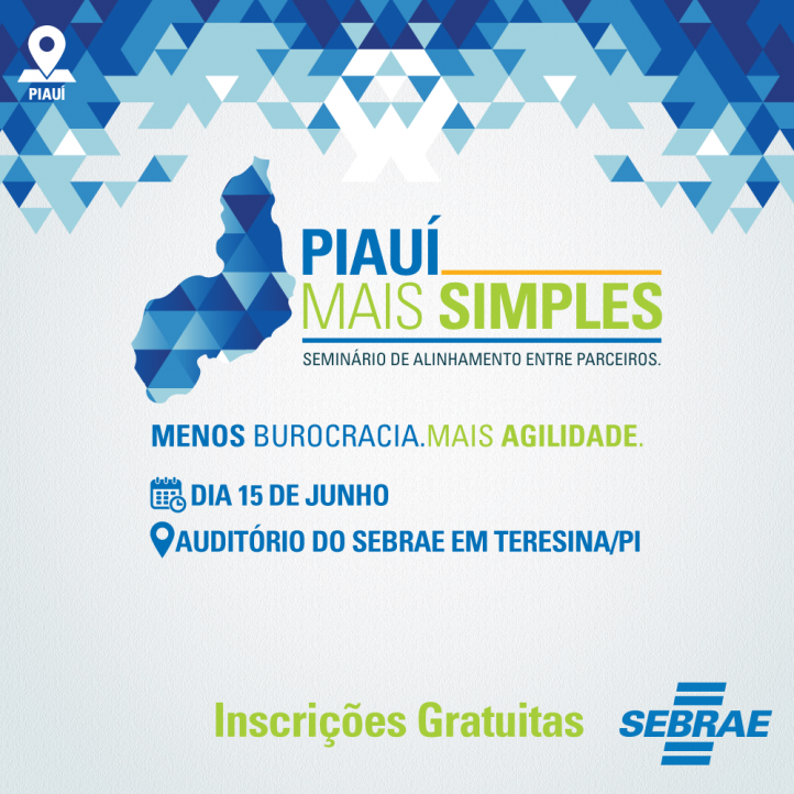 Nesta sexta-feira, 15 de junho, o Serviço de Apoio às Micro e Pequenas Empresas, Sebrae no Piauí, realiza o Seminário Piauí Mais Simples, no auditório da instituição na capital.