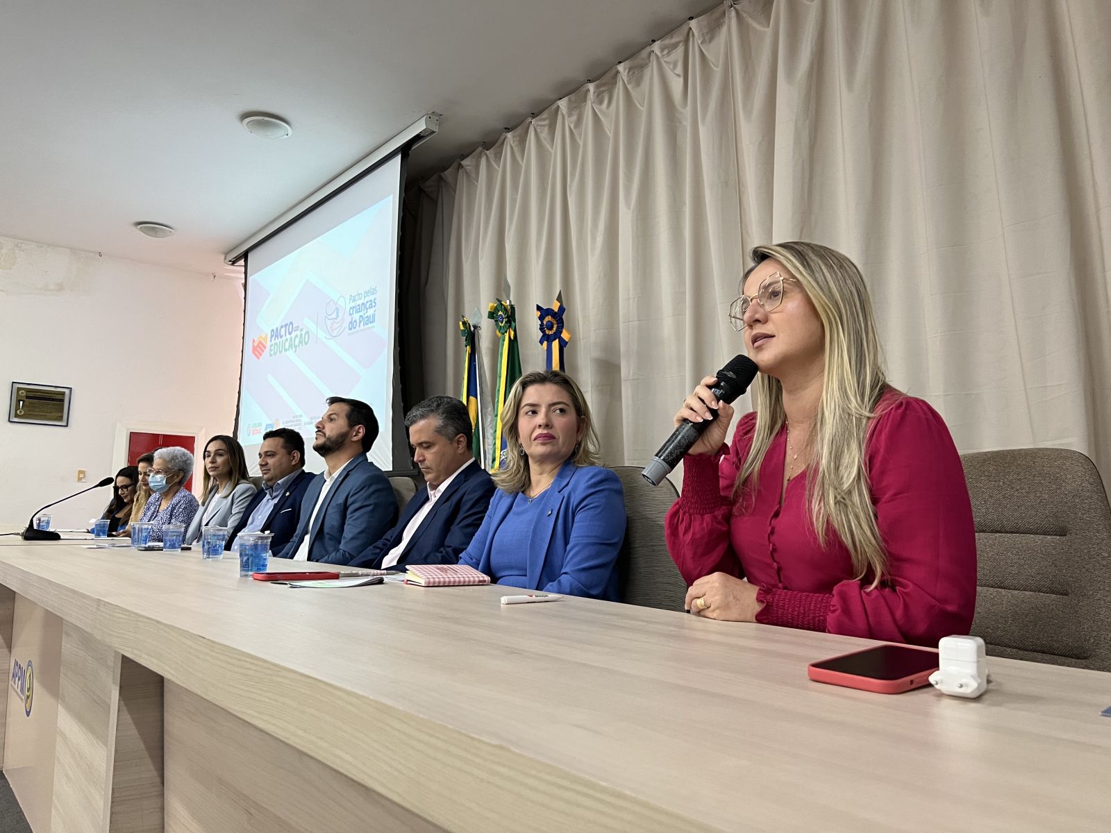 Durante a solenidade, o secretário de Estado da Educação, Washington Bandeira, apresentou o Pacto pela Educação, iniciativa que integra o Programa Acelera Seduc; e a coordenadora do Pacto Pelas Crianças do Piauí, Isabel Fonteles, apresentou a atualização das ações do programa e reafirmou a necessidade de aliança com os municípios para que todas as ações sejam realizadas de forma adequada, seguindo a filosofia do Pacto.