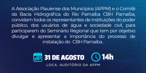 31 de agosto - APPM sediará Seminário regional que efetiva a criação do Comitê da Bacia Hidrográfica do Rio Parnaíba ...