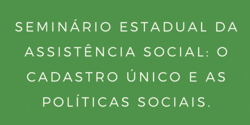 SEMINÁRIO ESTADUAL DA ASSISTÊNCIA SOCIAL: O CADASTRO ÚNICO E AS POLÍTICAS SOCIAIS ...