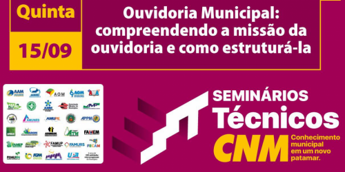 15 de setembro - CNM oferta seminário com o tema “Ouvidoria municipal: compreendendo a missão da ouvidoria e como estruturá-la” ...