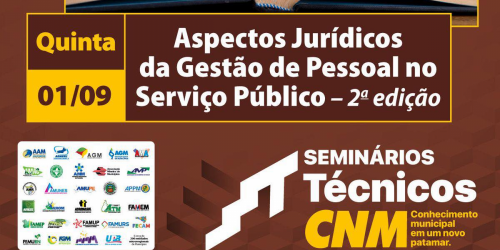 01 de setembro - CNM oferta Seminário: Aspectos jurídicos da gestão de pessoal no serviço público - 2° edição ...