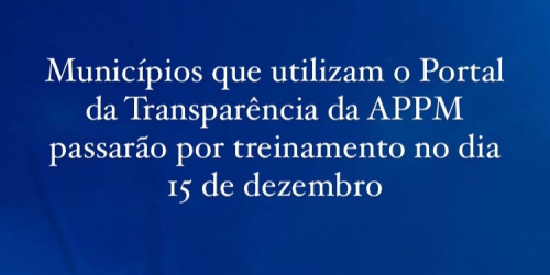 Municípios que utilizam o Portal da Transparência da APPM passarão por treinamento no dia 15 de dezembro ...