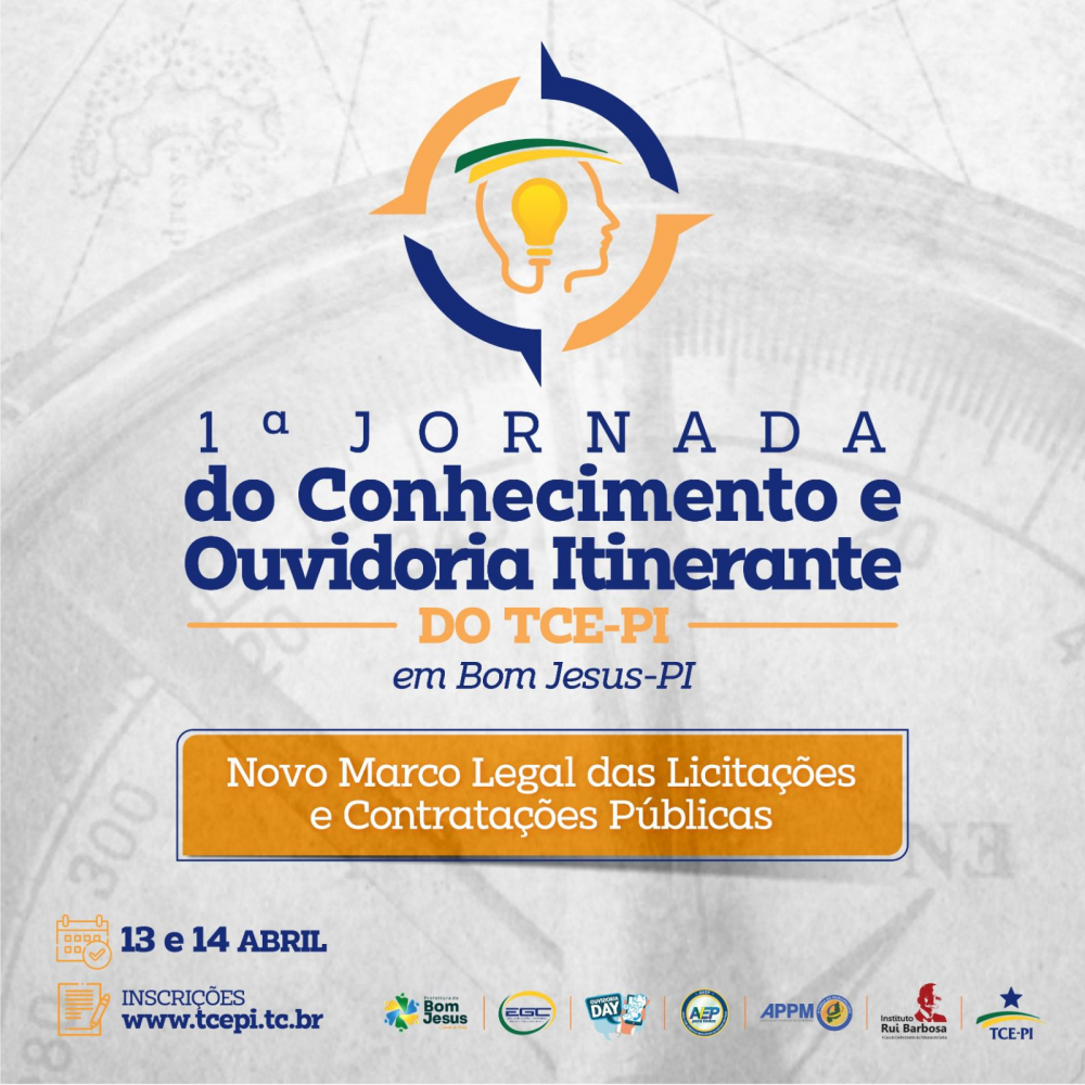 A Associação Piauiense de Municípios (APPM) e o Tribunal de Contas do Estado do Piauí (TCE-PI) convidam os Governantes municipais, servidores públicos e a sociedade em geral para participarem da I Jornada do Conhecimento do TCE-PI e o retorno do projeto “Ouvidoria Itinerante”, em Bom Jesus (PI), nos dias 13 e 14 de abril de 2023.