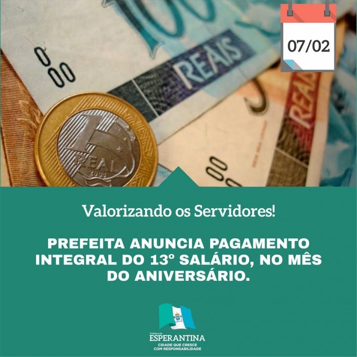 A prefeita Vilma Amorim anunciou nesta quarta-feira (07), a nova tabela de pagamento do 13º salário de todos os servidores do município de Esperantina.