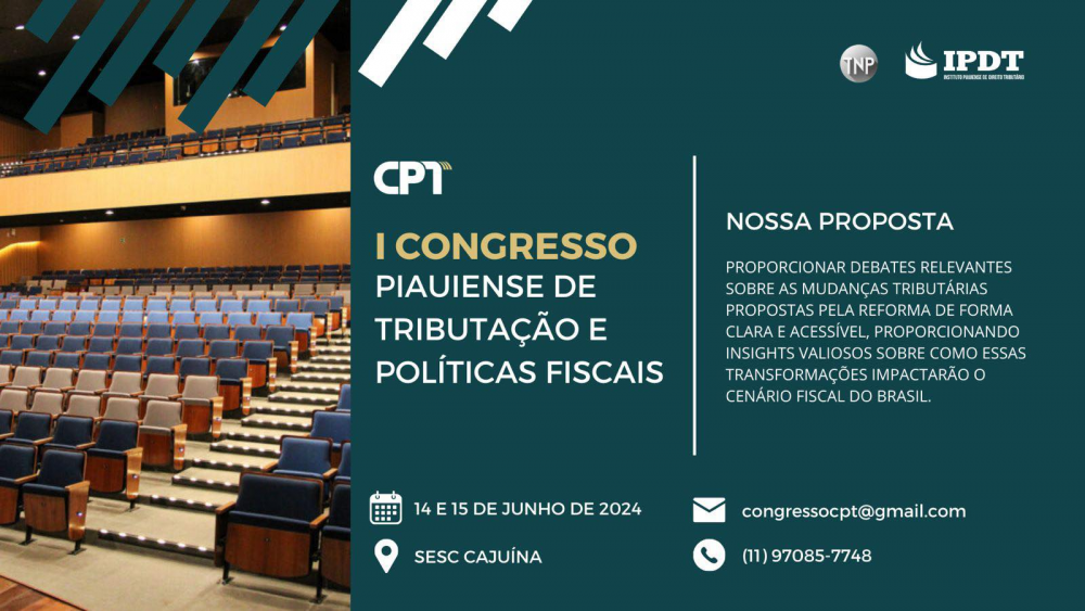 O evento é destinado a prefeitos, empresários, advogados, contadores e estudantes, e será realizado nos dias 14 e 15 de junho, no SESC Cajuína, em Teresina, ocasião em que autoridades da área a nível nacional debaterão com os presentes acerca das mudanças tributárias propostas pela Reforma, contempladas na EC 132/2023, tanto no setor público como no privado.