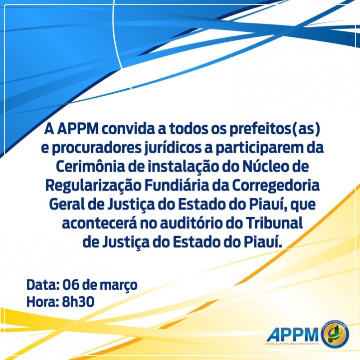APPM convida gestores para participarem da cerimônia de instalação do de Regularização Fundiária do Estado do Piauí
