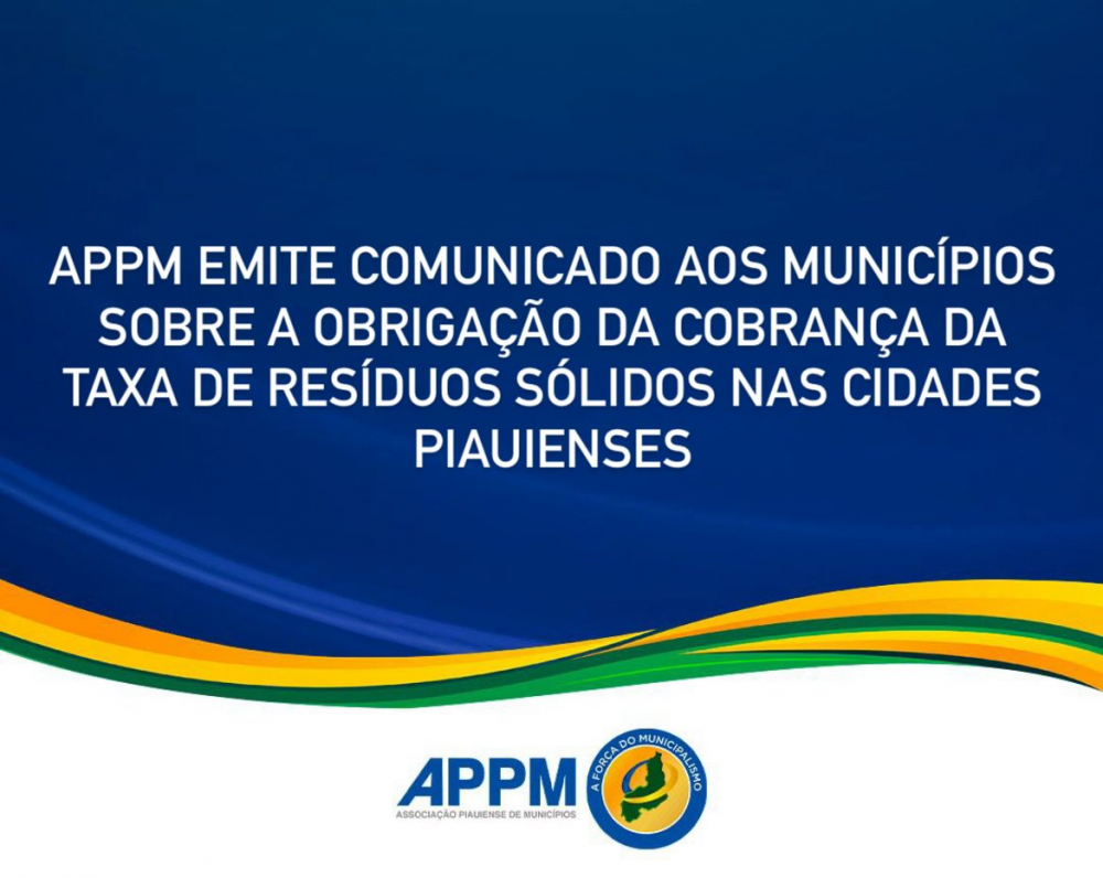 APPM emite comunicado aos municípios sobre a obrigação da cobrança da taxa de resíduos sólidos nas cidades piauienses