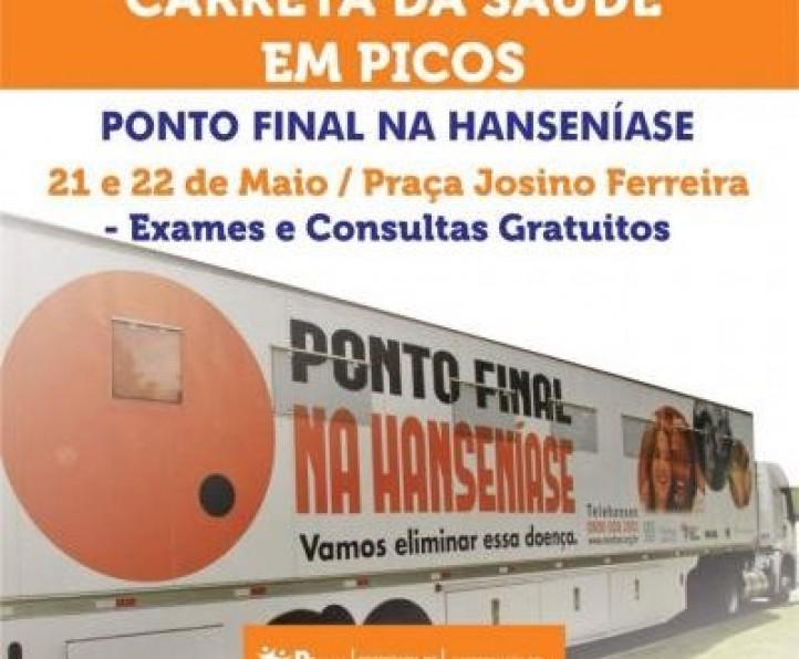 A Carreta da Saúde “Ponto Final na Hanseníase” estará em Picos nos dias 21 e 22 de maio, no centro da cidade, na praça Josino Ferreira, onde irá promover consultas e exames gratuitos, para reforçar o processo de diagnóstico e tratamento da hanseníase.