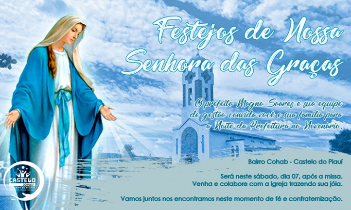 A cidade de Castelo do Piauí está em festa em comemoração ao novenário de Nossa Senhora das Graças. O evento já é uma tradição no município, e no sábado (07) será a noite da Prefeitura, dentro da programação religiosa das festividades.