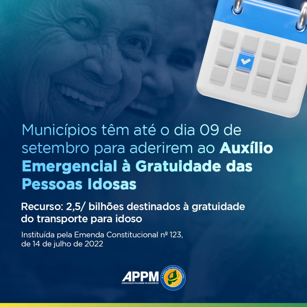 Municípios têm até o dia 09 de setembro para aderirem ao Auxílio Emergencial à Gratuidade das Pessoas Idosas
