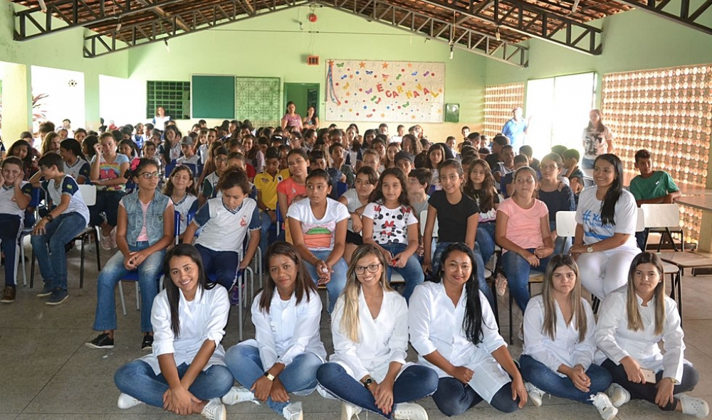 A ação foi realizada nos turnos tarde e noite, onde os alunos se reuniram no pátio da escola e as estagiarias, juntamente com a enfermeira Renata Sulamita, realizaram as atividades.