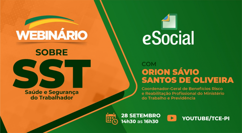 O Tribunal de Contas do Estado do Piauí (TCE-PI), por meio da Escola de Gestão e Controle (EGC), realizará o Webinário sobre Saúde e Segurança do Trabalhador (SST) no dia 28 de setembro, de 14h30 às 16h30 pelo canal do YouTube do Tribunal.