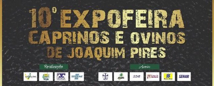 A Prefeitura Municipal de Joaquim Pires, através da Secretaria Municipal de Agricultura, em parceira com SEBRAE, EMATER e Associação de Criadores de Caprinos e Ovinos (ACCOV-JP), realiza a 10º Expofeira de Caprinos e Ovinos 2017. O evento que já é tradição no município acontece de 12 a 15 de outubro.