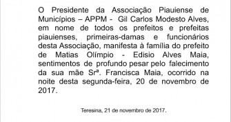Nota de solidariedade ao prefeito de Matias Olímpio ...