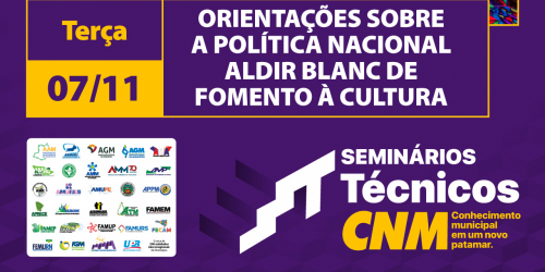 07 de Novembro - CNM oferta seminário sobre Política Nacional Aldir Blanc de Fomento à Cultura ...