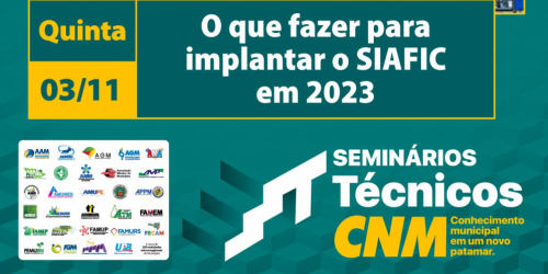 03 de novembro - O que fazer para implantar o SIAFIC 2023 é tema de seminário da CNM ...