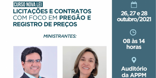 Curso sobre a Nova Lei de Licitações e Contratos com Foco em Pregão e Registro de Preços será ministrado nos dias 26,27 e 28 de outubro ...
