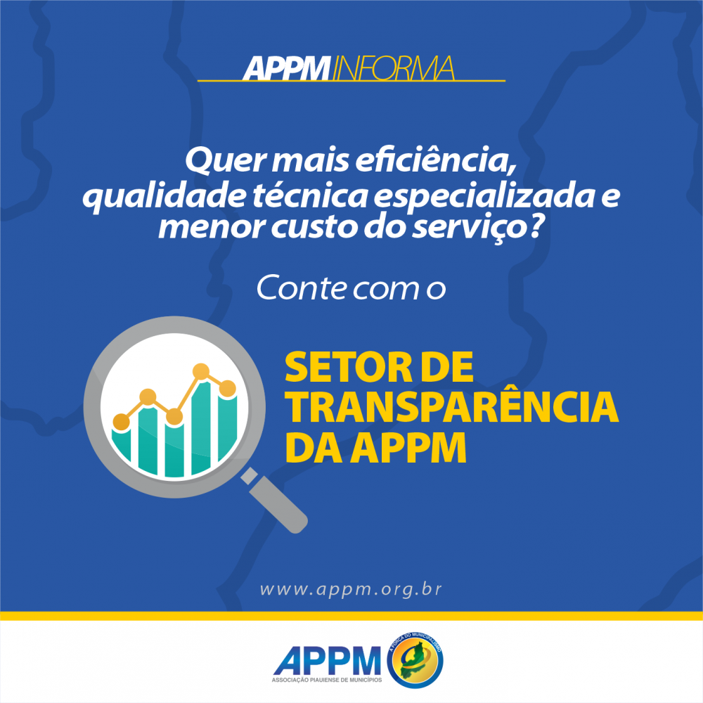 Eficiência, qualidade técnica especializada e menor custo do serviço. Essas são as principais vantagens que Setor de Transparência oferece aos municípios filiados à Associação Piauiense de Municípios (APPM).